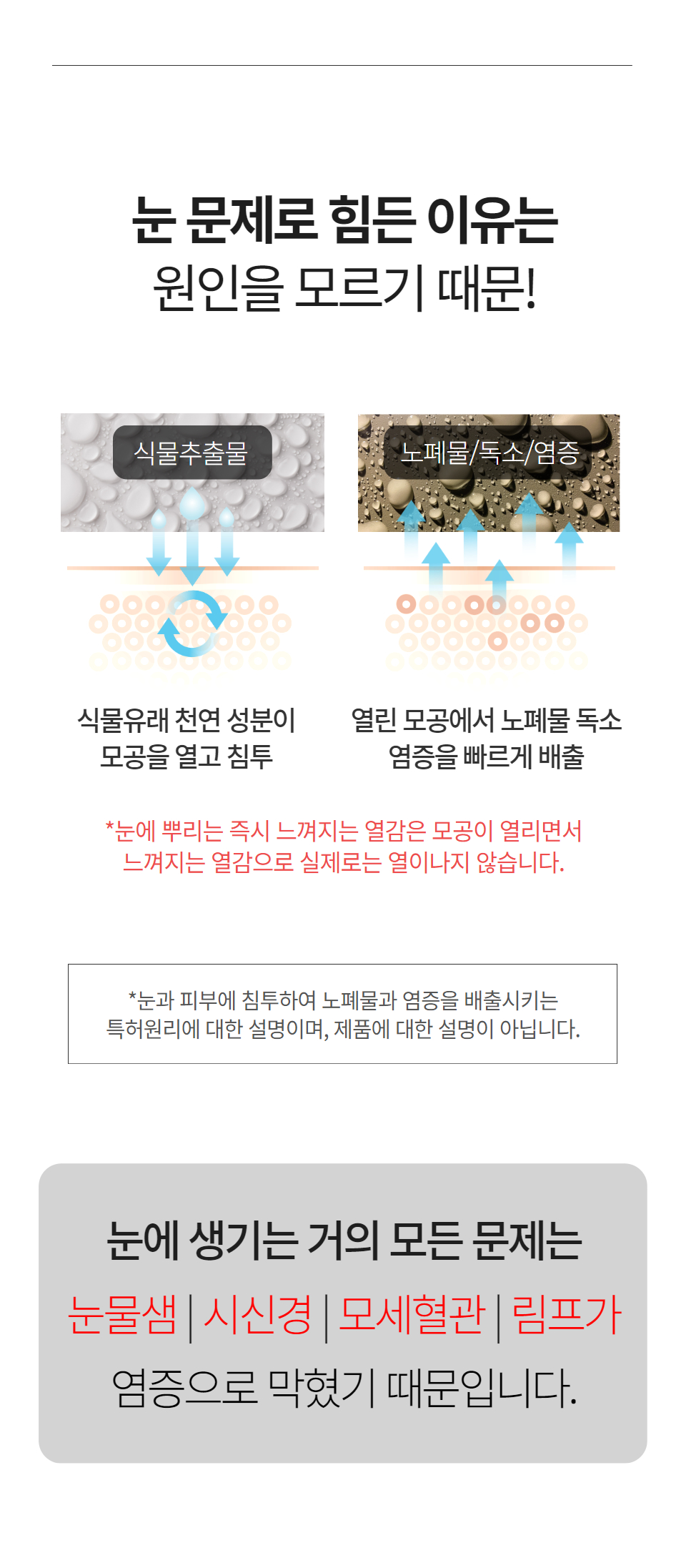 사용할 때 주의사항 | 눈을 감고 사용하세요 / 눈에 들어가도 안전해요 / 열감이 느껴져요 |